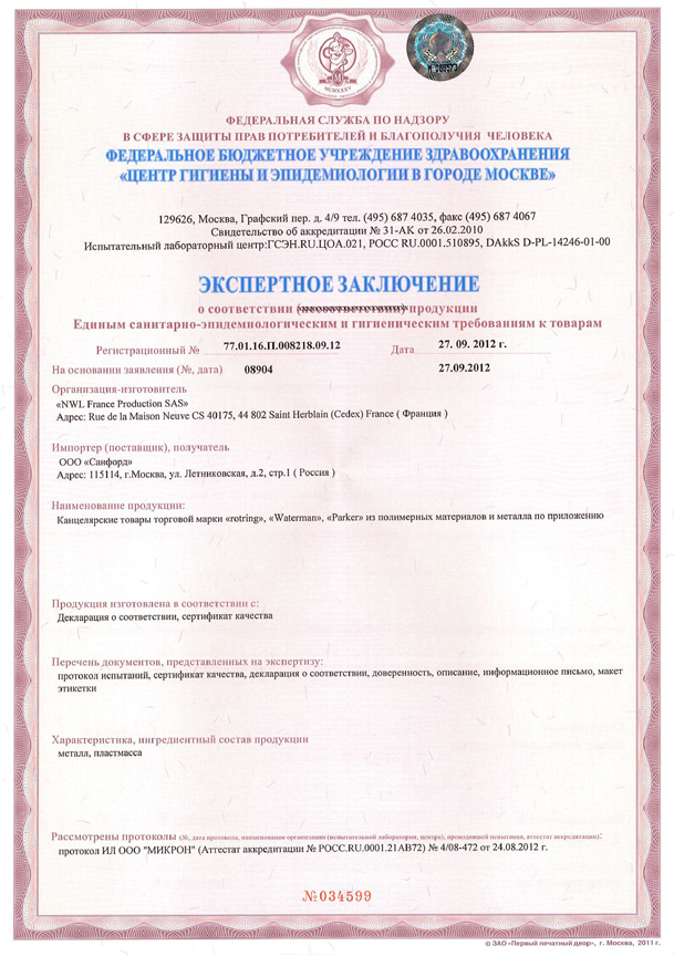 Сертификаты - Официальный дилер PARKER в Дзержинске